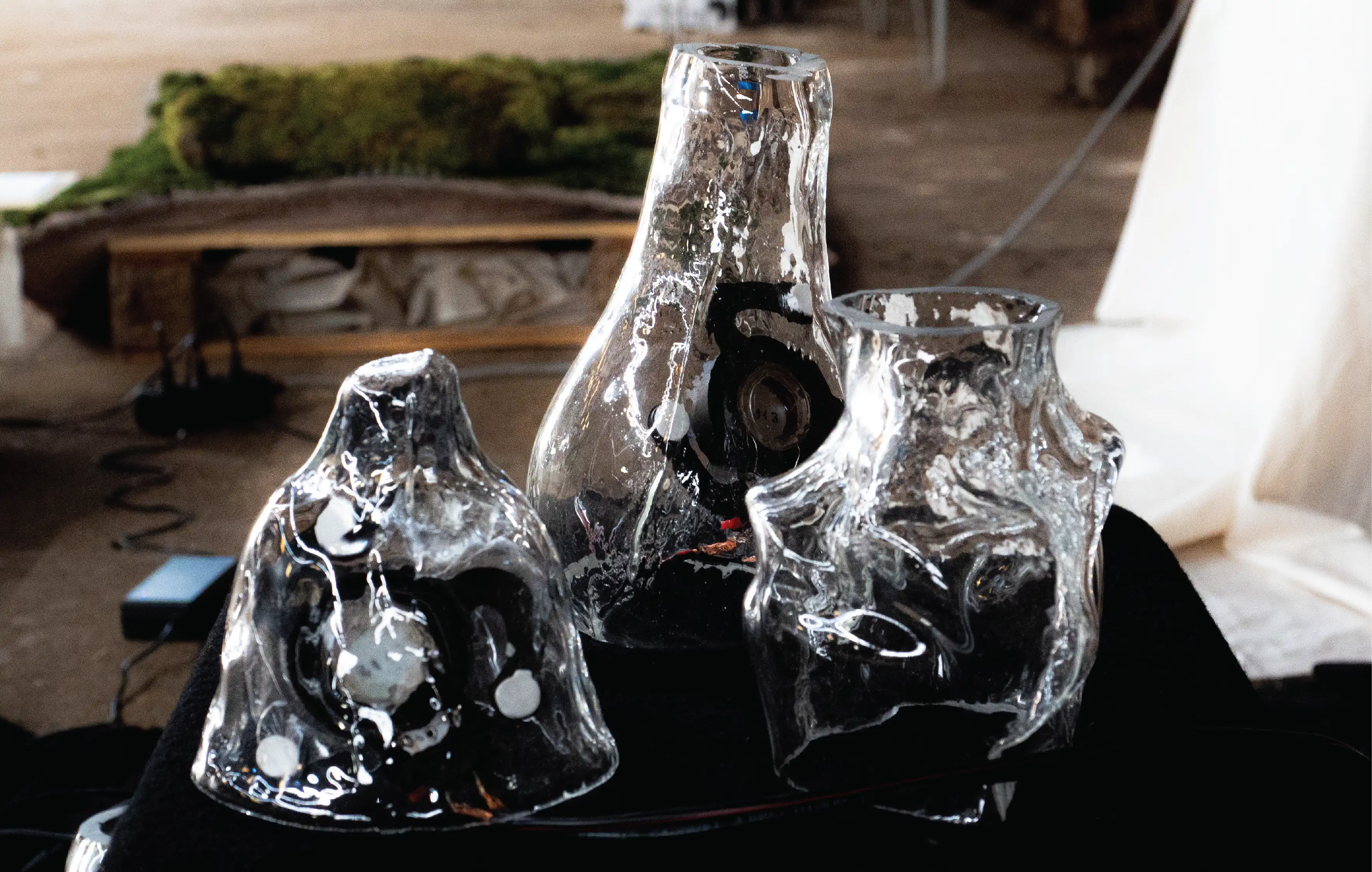 By channeling these collected sounds through larger glass vessels of different thicknesses and lengths, it unveiled hollowed, distorted sounds as a result of glass and sound mixed together. Despite the learning curve, I found the process exciting as I could distort sound in a natural way.