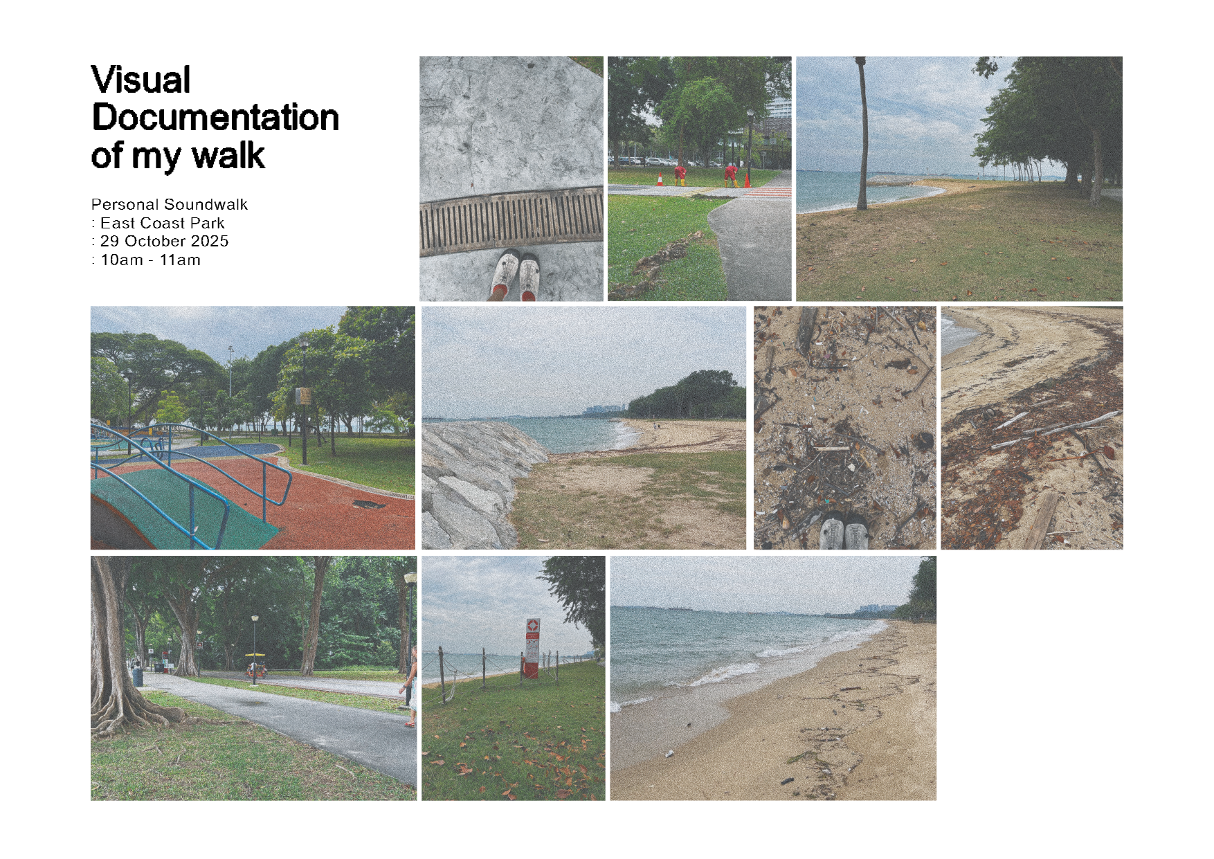 For my first location, I chose East Coast Park as I wanted to listen to nature. Starting from a quiet place, away from the city, felt ideal too. Giving myself an hour, I started from wherever I felt like starting and tried my best to walk in the direction my listening led me. From the starting point, I recorded my entire journey from start to end.