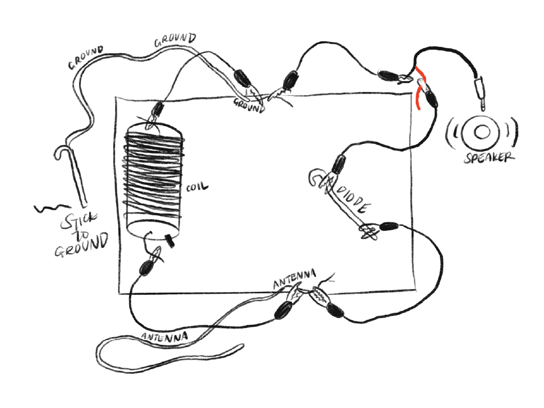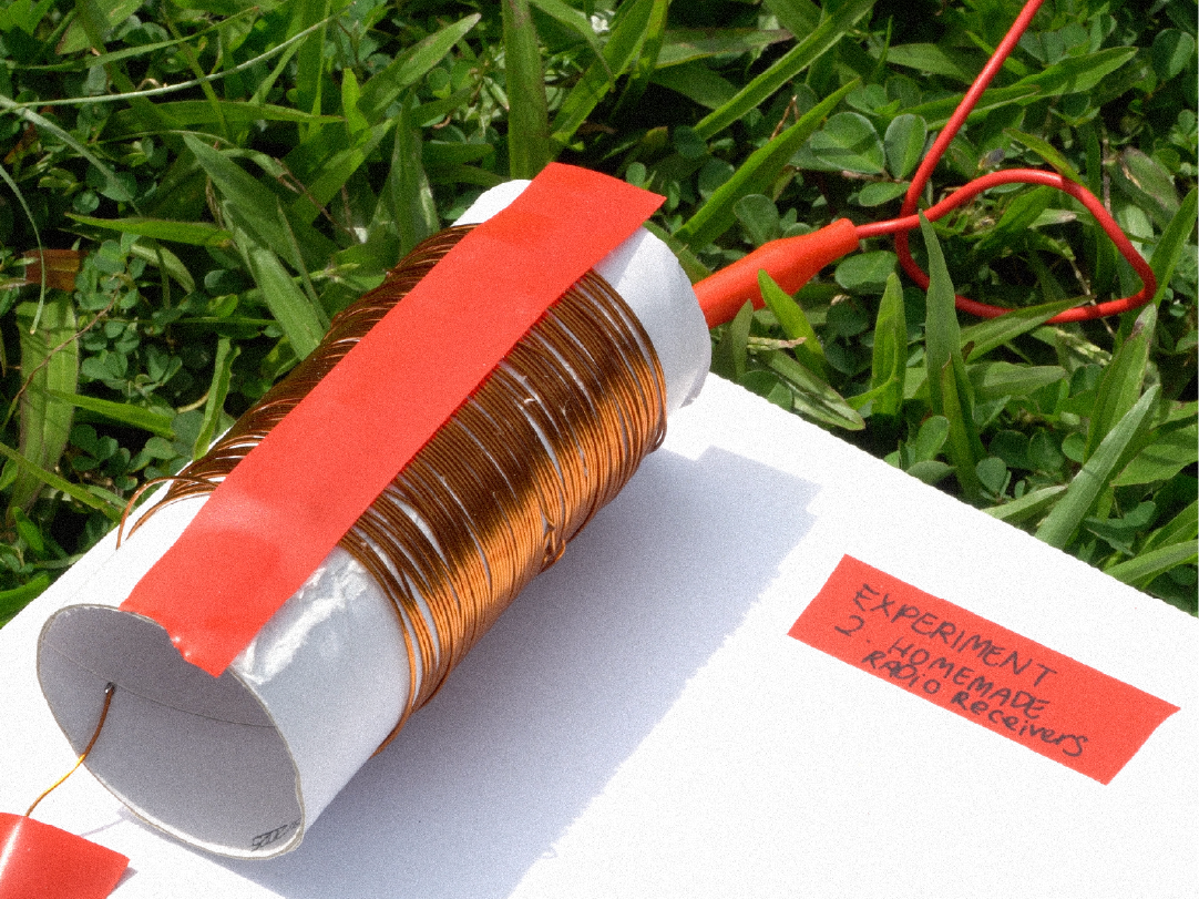 One of the inspirations behind this experiment came from discovering Shortwave Collective's work, which uses the electromagnetic spectrum as an artistic medium. An international feminist group, their practice revolves around listening to the electromagnetic transmissions embedded within our central soundscape. I first heard about them when they were holding DIY radio receiver workshops in Rotterdam, the Netherlands. These workshops taught people to build simple, low cost, no battery radio receivers with easy-to-source materials. Hence the name DIY.