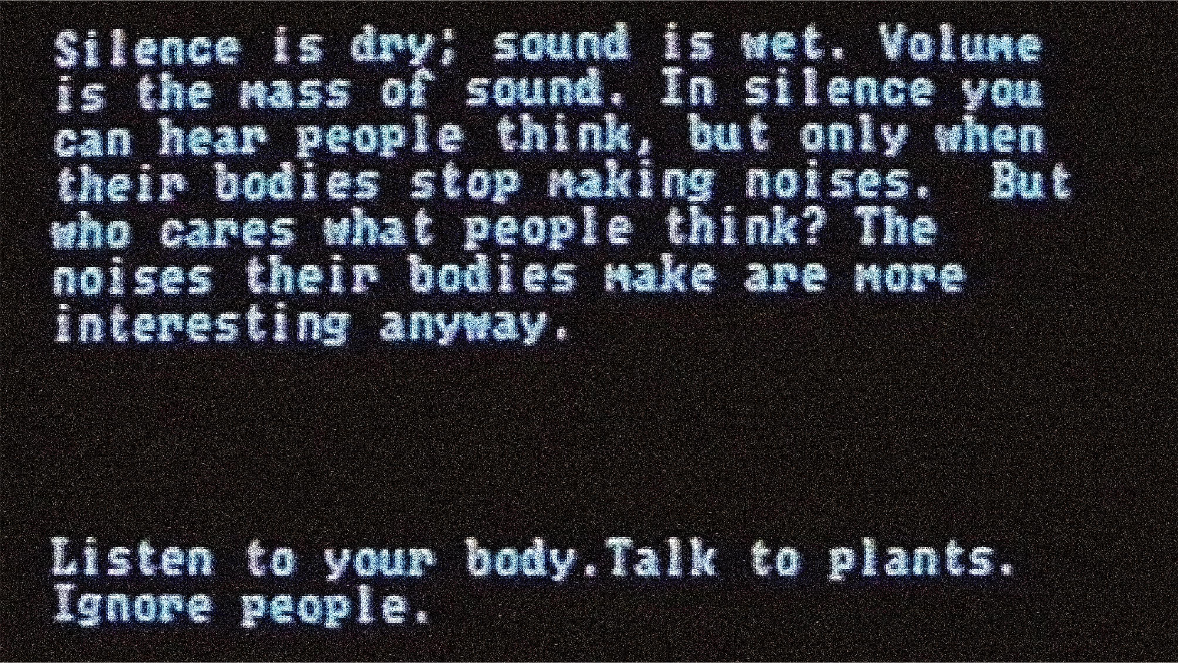 Listen to your body. Talk to plants. Ignore people. An oddly inspiring image I found in a.rena